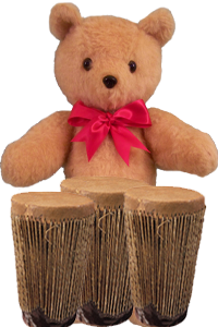 Frederick Bear looked somewhat doubtful as he and Theodore Bear walked along with the violin player. "Would you like to try to play something else, Theodore," he asked, "you can still refuse if you are too nervous." Theodore thought for a while before he answered and by that time they were standing in front of the musician's friend. "Johnathan, meet my new friends. This is. . ." the violin player said, smiling sheepishly and turning to the bears, "I am sorry, after all that I forgot to ask your names!" Theodore smiled, "This is Frederick," he said, "and I am Theodore," and so they got to meet the drummer with the tom-toms. "Two Bears!" said Johnathan, "wonderful, pleased to meet you guys. Can you play the drums? You should manage very well with those big, sturdy paws," and he smiled broadly and looked pleased with his idea. "Watch me for a bit to get the hang of it and then you try. Look, like this," and he beat out another steady rhythm.