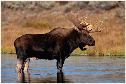 Frederick and Theodore stood quite still on the path and looked across the water to the grassy patch on the other side of the lake. The lake was small so they could see clearly and the smiles on their faces grew bigger and bigger but they did not say anything, just watched carefully. There in the grass next to the water was a magnificent black bear. "This is our lucky day,” Theodore thought to himself, "maybe he was hoping to find a fish and I do not think the ranger would mind him catching one!" The bear looked at the two visitors standing on the trail path. Theodore and Frederick could hardly believe their good fortune. After some time the bear turned around and went back into the forest, stopping to eat a few wild berries on a shrub first and Theodore and Frederick started back to the rest camp to be in time for the bus. They walked quietly as before, enjoying the sweet sounds of a tinkling stream, birds twittering in the trees on both sides of the trail and thinking about their amazing stroke of luck to see a moose and a bear on the same day.