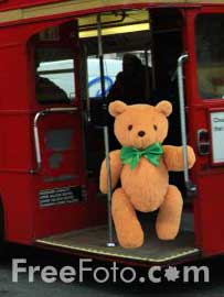 Soon Theodore Bear saw some people standing next to a pole with a sign on it. When he got nearer he could read what was on the sign. BUS STOP it said. “Ah! This is where I wanted to be,” thought Theodore and he joined the others who were waiting there. It did not take long before the big red bus came rumbling along the road and stopped to pick up the passengers. Theodore waited patiently until last as he had been the last to arrive there and then he climbed up the steps into the bus. The driver was surprised. “Well, well. Good morning, Mr Bear, welcome on my bus. This is the first time I have had a bear ride on my bus and you look so smart with your lovely green bow. You may have a free ticket and do sit right up here on this seat next to me so you can look out of the front window and see everything.” “Thank you, Mr Driver,” said Theodore and he was so happy to meet such a helpful bus man.